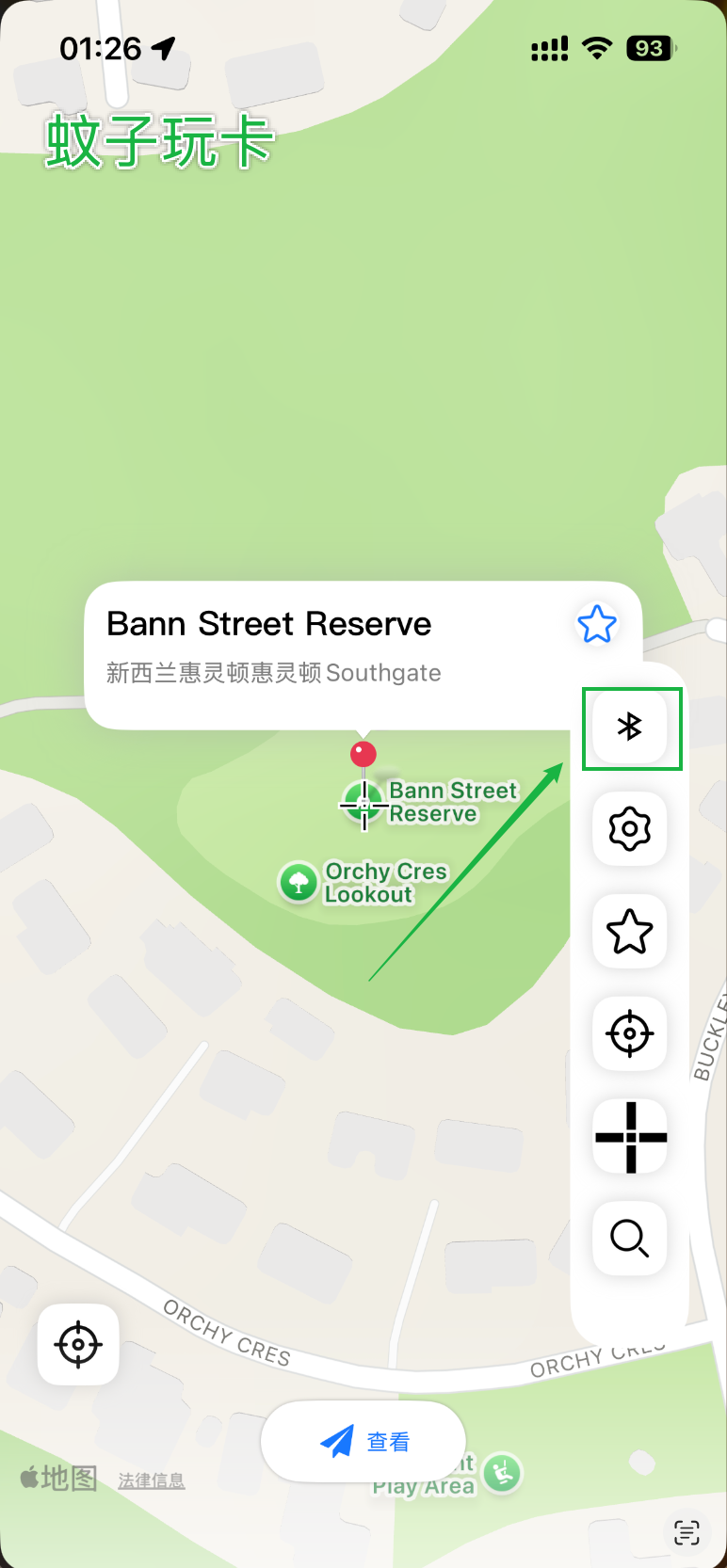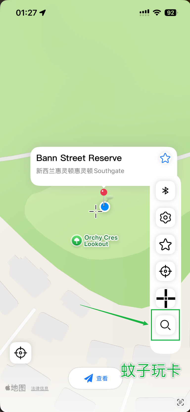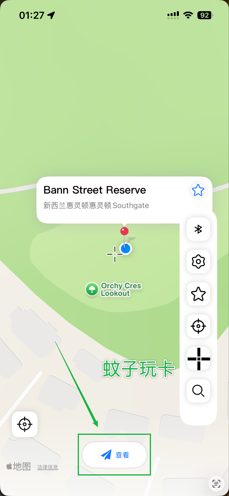 - 黑色准星:标示当前地图上即将被选中的位置。点击底部的“查看”按钮时,该位置将被选中并标记为红色大头针,同时软件会尝试将该位置发送给尾插设备。